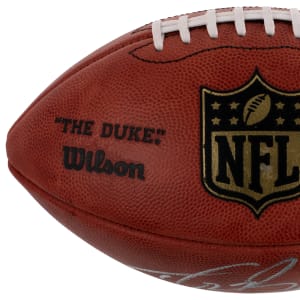 Go long for this Drew Brees signed and inscribed football. One of the game's most prolific passers of all-time, Brees ranks among the top five in the most important career stats categories for quarterbacks. This Wilson "The Duke" Official NFL football takes the bidding field in solid shape, with a prominent NFL Shield logo. Brees has dominated the panel below the logo panel, with a big and bold silver signature and the inscription "NFL Passing Record 10/18/18". In addition to his impressive stats, Brees has a championship win in Super Bowl XLIV on his resume, and he looks like a lock to be voted into the Hall of Fame this year, now that he is eligible.