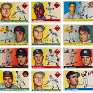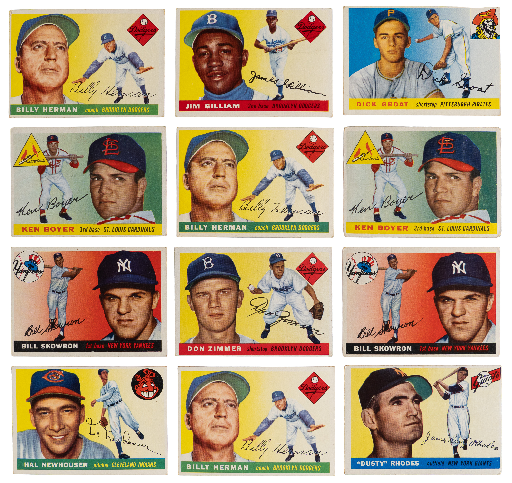 Catch the offered 1955 Topps collection of (176) cards with multiple stars. The horizontal “giant size” assortment generally presents in the (GD to VG) range with some better or lesser. A total of (6) tougher high numbers are present. Highlights include: #1 Rhodes (GD), (2) #5 Gilliam (both GD), (4) #19 Herman (average VG), (2) #22 Skowron (VG, GD), #24 Newhouser (VG), #26 Groat (GD), #92 Zimmer RC (VG), (2) #125 Boyer RC (GD, FR) and #156 Black (PR).