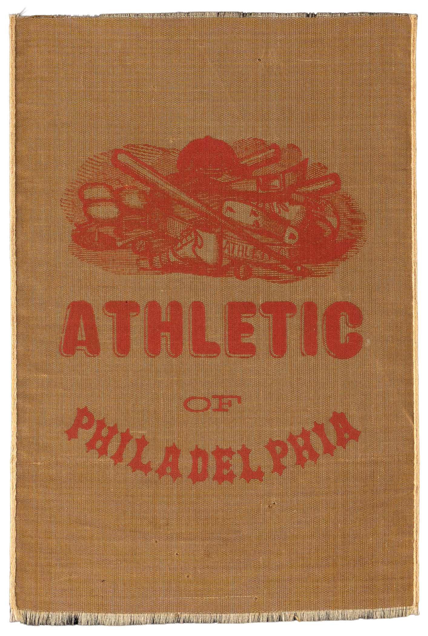 In this case, the offered silk is more akin to political campaign ribbons of the day in size, measuring 3-1/4” x 4-7/8”. Red graphics on a cream field take the form of baseball equipment piled in a heap, followed by the legend “Athletic of Philadelphia”. The integrity of the graphics and the silk itself are outstanding, with deference to minimal fraying on the top and bottom edges, and a single diagonal fold line near the bottom-right corner, that is fairly unobtrusive in nature. Otherwise, this exceedingly rare relic is truly impressive.