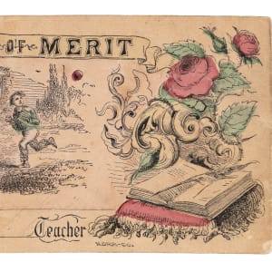 Demonstrate your best bidding behavior, to earn this circa 1860s N. Orr Co. Reward of Merit certificate. Similar to a dollar bill in size, this mid-19th Century marvel measures 6-1/2" x 2-7/8". Issued at a time when the sport of baseball was growing from infancy into adolescence, this antique certificate is centered by an in-action game scene featuring three boys, with a batter, a bare-handed catcher, and a base runner. Wear is moderate, with a crease at top-right, a name written on the back, and minor surface paper loss on both the front and back at bottom-left. The graphics remain strong, and the baseball scene is free of any significant detractions. While rewards of merit are in good supply, those featuring sports scenes are fairly scarce, making this attractive offering a nice find.