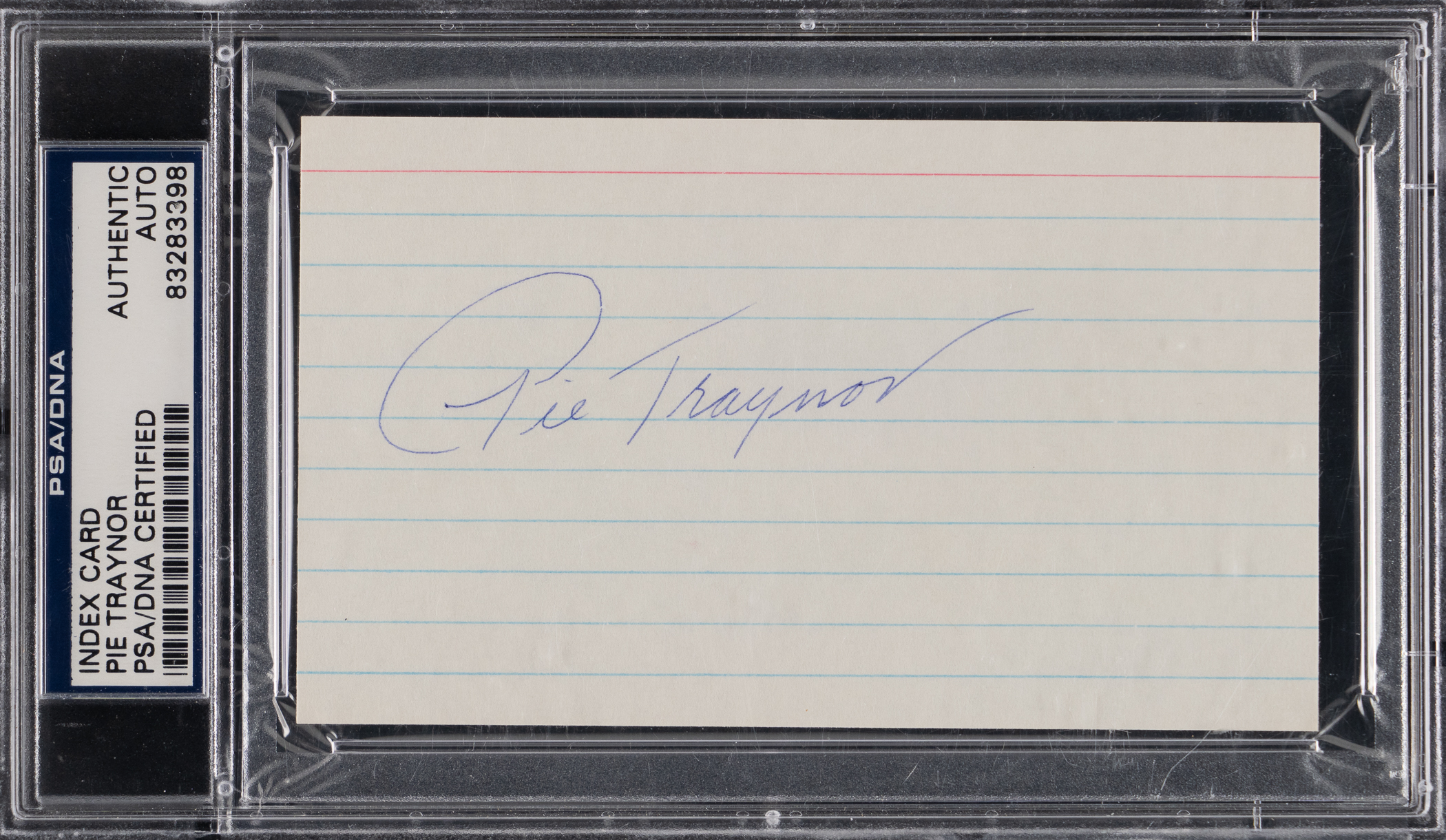 Cross an important Hall of Famer off your autograph want list, when you claim this "Pie" Traynor signed index card. Traynor spent his entire 1920-1965 MLB career with the Pittsburgh Pirates, as a player, manager, scout and radio broadcaster. He death in 1972 leaves his signature in somewhat short supply, and this neatly signed index card stands as a pleasing example of his coveted autograph.