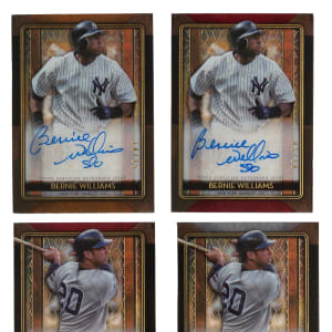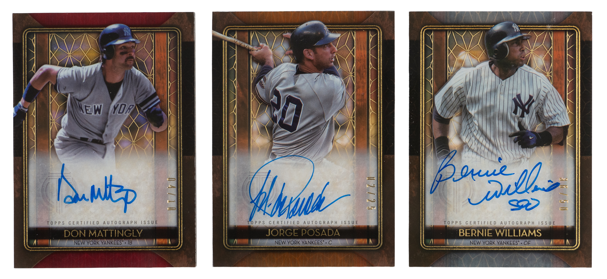 Inkredible compilation of seven different 2020 Topps Tribute Iconic Perspectives certified autograph parallels featuring New York Yankees stars Don Mattingly, Jorge Posada and Bernie Williams. The following "on-card" parallels are included: (3) Posada (#/10, #/25, #/70), (3) B. Williams (#/10, #/25, #/50) and Mattingly (#/10).