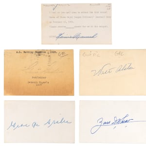 An exciting selection of Hall of Famers is served up with these (5) signed flats. Four of the subjects were elite .300+ hitters, and the fifth subject was a well-respected manager. All departed to the "Field of Dreams" long ago, and all are considered prime collecting targets.