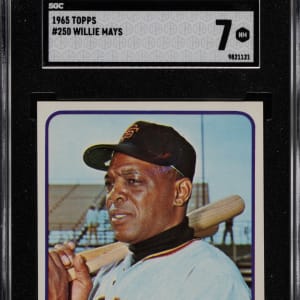 Graded NM 7 by SGC. The 1965 baseball season was a banner campaign for Willie Mays as the slugger paced the National League in several offensive categories en route to winning the circuit's Most Valuable Player Award. He also got to appear on this razor-sharp 1965 Topps #250 gum card. A sparkling treasure of the San Francisco Giants Hall of Famer.
