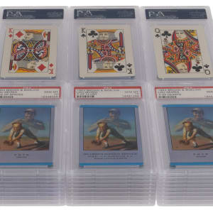 Each graded GEM MINT 10 by PSA. Simply perfect 1953 Brown & Bigelow Lou Gehrig full deck of cards plus a joker and header totaling (54) cards. The sponsor breakdown is as follows: (46) KMYR (Denver, with full club and joker), (4) Southern Oil (New York) , (2) Millman's Sunoco (Washington D.C.), (1) Filson's Cities (Oklahoma with header) and (1) Rigs Midgets.