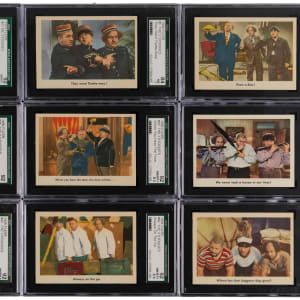 Non-stop laughter is guaranteed with the offered 1959 Fleer The Three Stooges SGC graded starter set of (13) different cream backs. Includes: SGC MINT 9: (2 cards) with #30, 69; SGC NM/NM+ 8.5: (7 cards) with #21, 42, 45, 49, 55, 71, 77; SGC NM/MT 8: (2 cards) with #61, 70; SGC NM 7: (2 cards) with #3 Larry and 5.