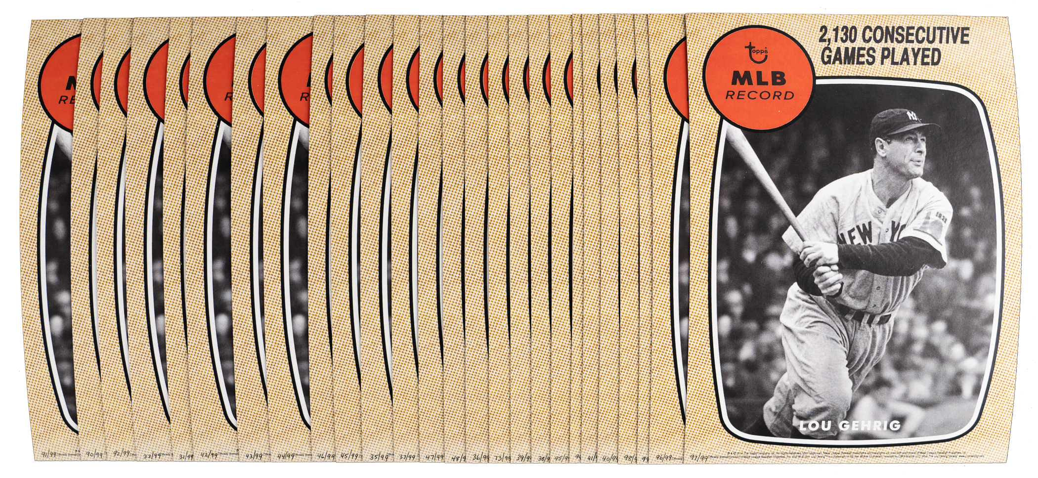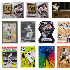 2000s Lou Gehrig: (12) 2004 Leaf Limited #22 Lumberjacks (all #/493), 2007 Upper Deck Premier #7 Premier Stitchings (#/50), (26) 2014 Topps Heritage MLB Record 5x7 (all #/99), (2) 2017 Topps Storied World Series # (both #/250), (2) 2019 Topps 150th Anniversary Commemorative Medallion (one #/150)