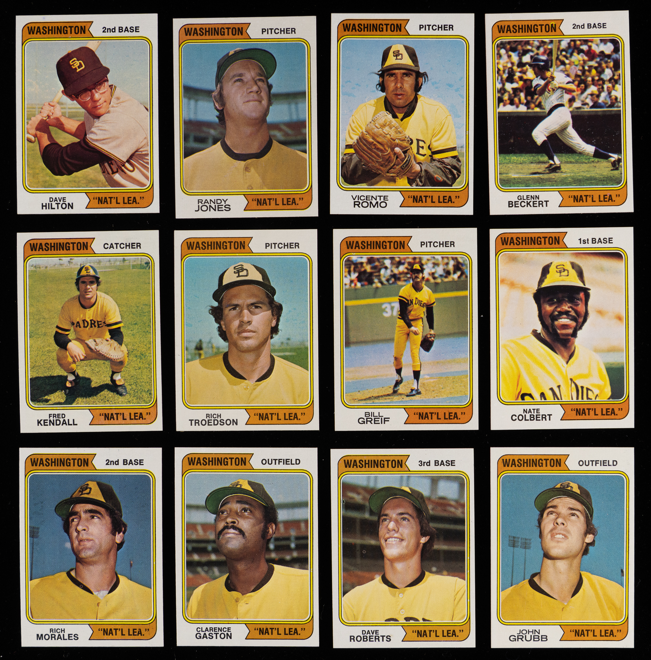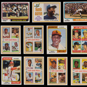 Comprehensive 1974 Topps high-grade complete set of (660) cards plus the 44-card Traded and 15-card Washington variation subsets. This consistently attractive selection averages (NM to NM-MT) condition with many better and a smaller percentage lesser (stored in clean top loaders). Highlights include: #1 Aaron (EX-MT), #2-6 Aaron Special (average NM), #10 Bench (NM), #20 Ryan (EX, stain), #80 Seaver (NM-MT), #95 Carlton (EX-MT), #105 Fisk (NM), #130 R. Jackson (NM-MT), #215 Kaline (EX), #250 McCovey (EX-MT), #250 McCovey (EX-MT, Washington), #252 Parker RC (NM), #283 Schmidt (NM), #300 Rose (NM), #340 Munson (NM), #350 Gibson (NM-MT), #456 Winfield RC (EX-MT) and #598 Griffey Sr. RC (NM).