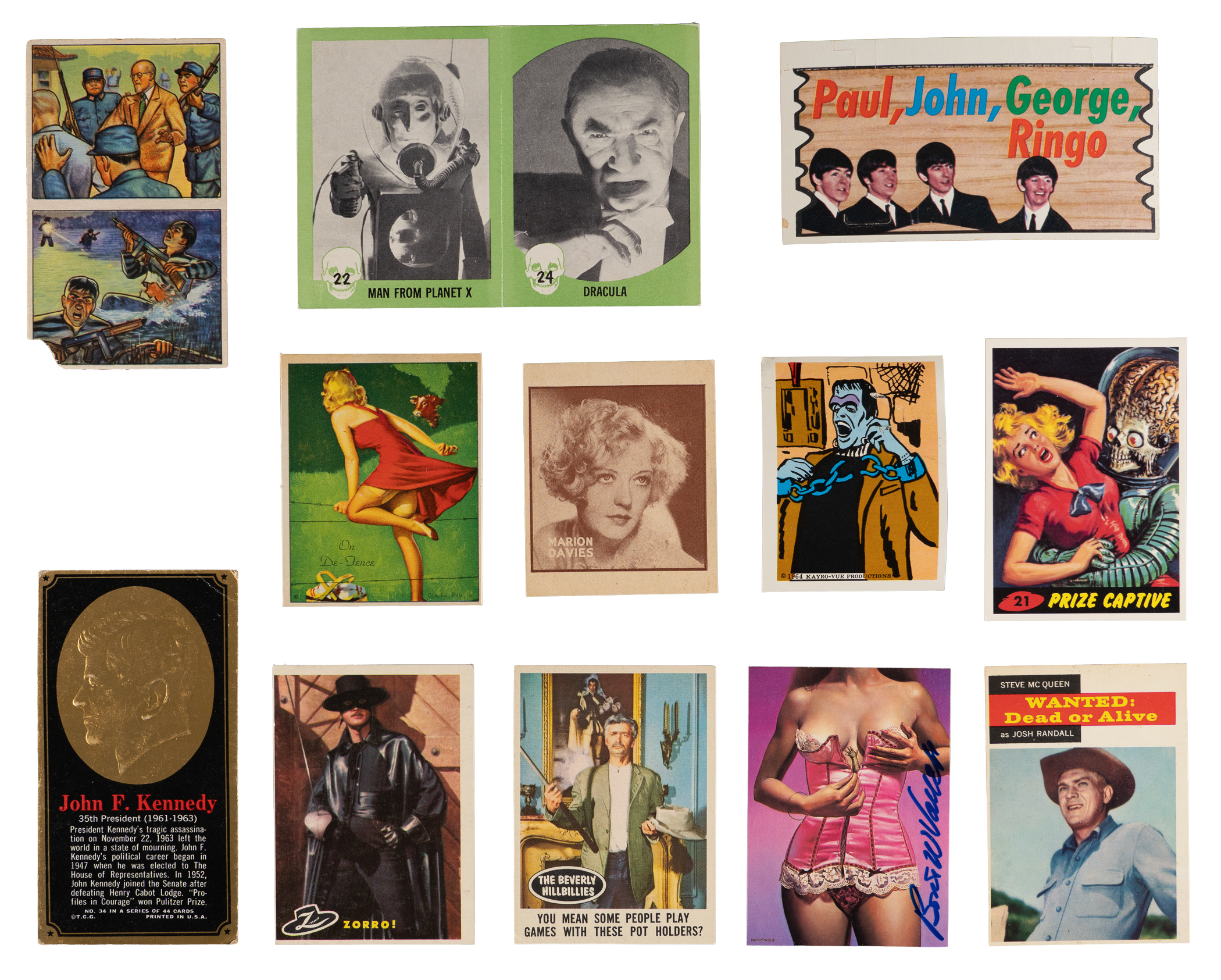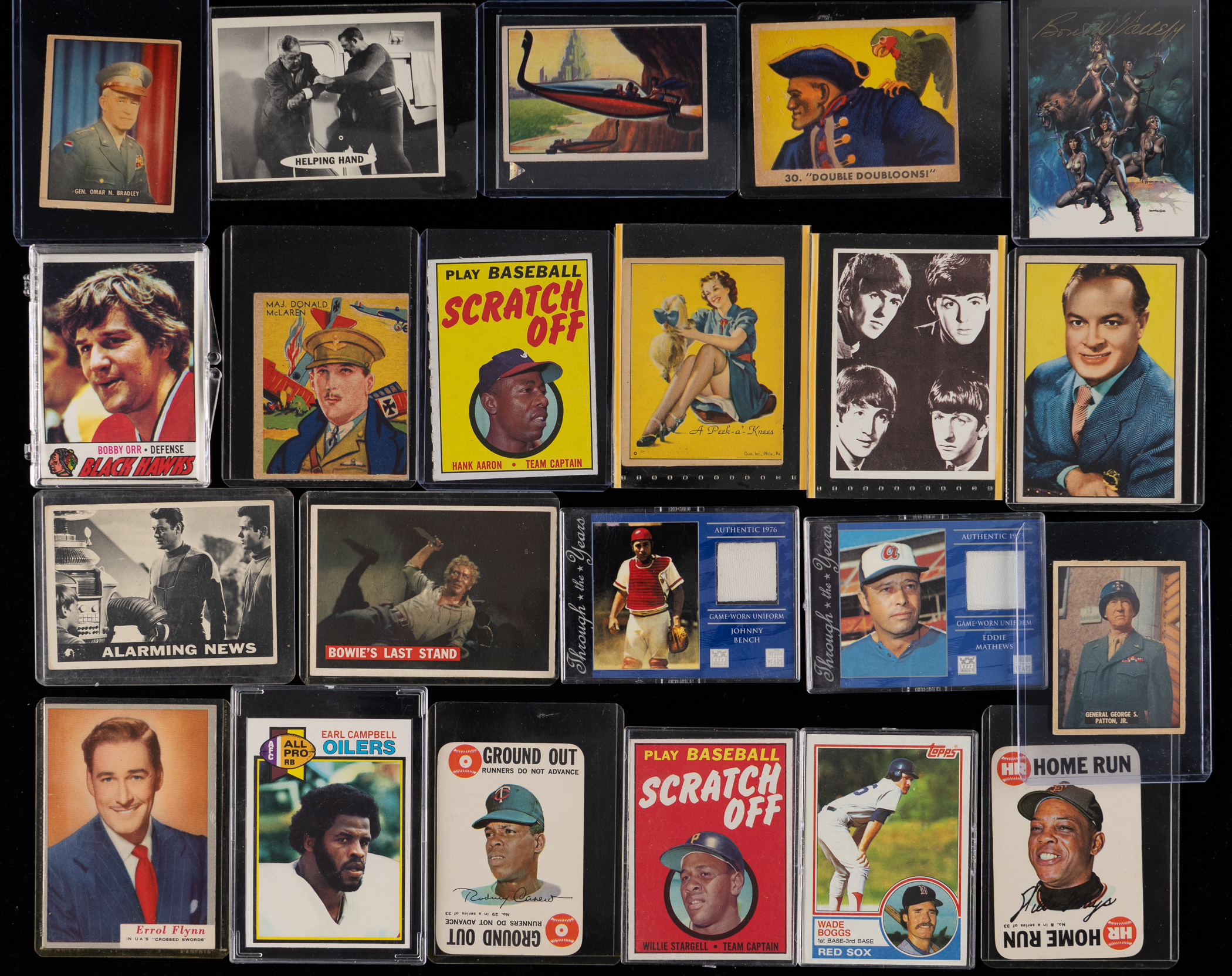 Treasures abound in this far-reaching bundle of 1930s-1990s non-sport and sport card sets, singles, and action figures.