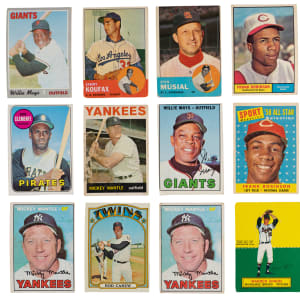 1967 Topps: (165 cards, average GD) with #5 Ford (GD), #45 Maris (VG), (5) #103 Mantle CL (average FR with 40% marked), (2) #150 Mantle (both FR), #200 Mays (FR), #355 Yastrzemski (VG), (3) #423 Mays/McCovey (VG, GD, PR), #445 Sutton (VG-EX);
