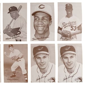 Presented is a 1963 Exhibit Stat Back starter set of (24) different cards plus five duplicates including seven Hall of Famers. These postcard-sized collectibles generally present in the (EX to EX-MT) range with some better or lesser. Highlights include: Drysdale (EX), Ford (EX-MT), F. Howard (VG), Killebrew (VG), (2) B. Robinson (EX-MT, EX), (2) F. Robinson (both EX) and Wills (EX).