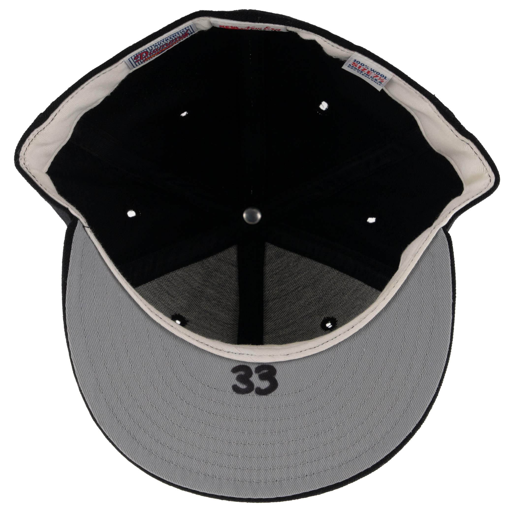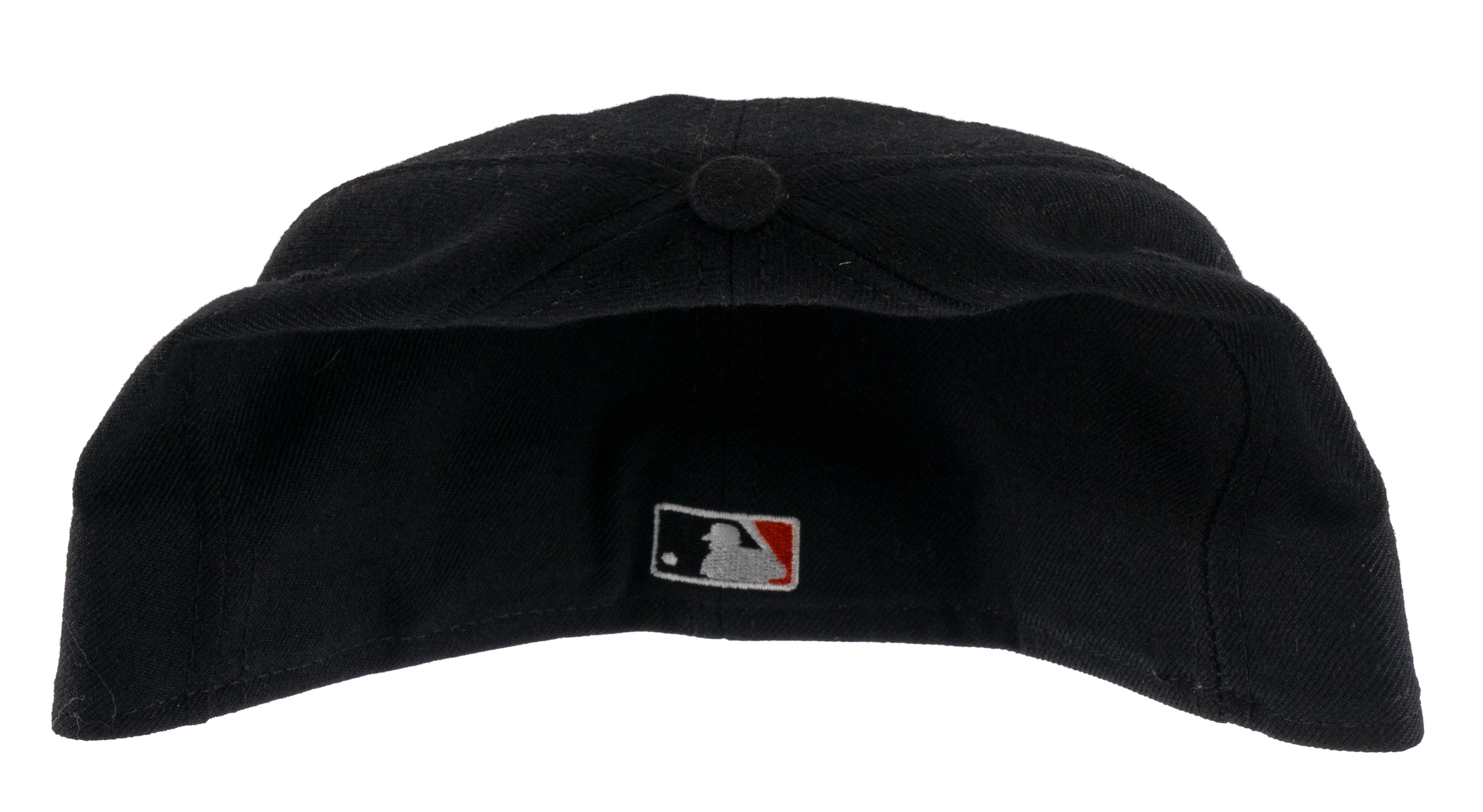 Seen on the front of this handsome cap, is the Orioles "Bird" mascot, and the MLB logo is positioned at center on the rear. The interior sweat band shows minimal wear, including light staining at front. Located at rear on the sweatband are Diamond Authentic Collection and New Era 59/50 labels, along with a Size 7-1/2 tag. Written in black marker under the bill, is Murray's uniform number "33".