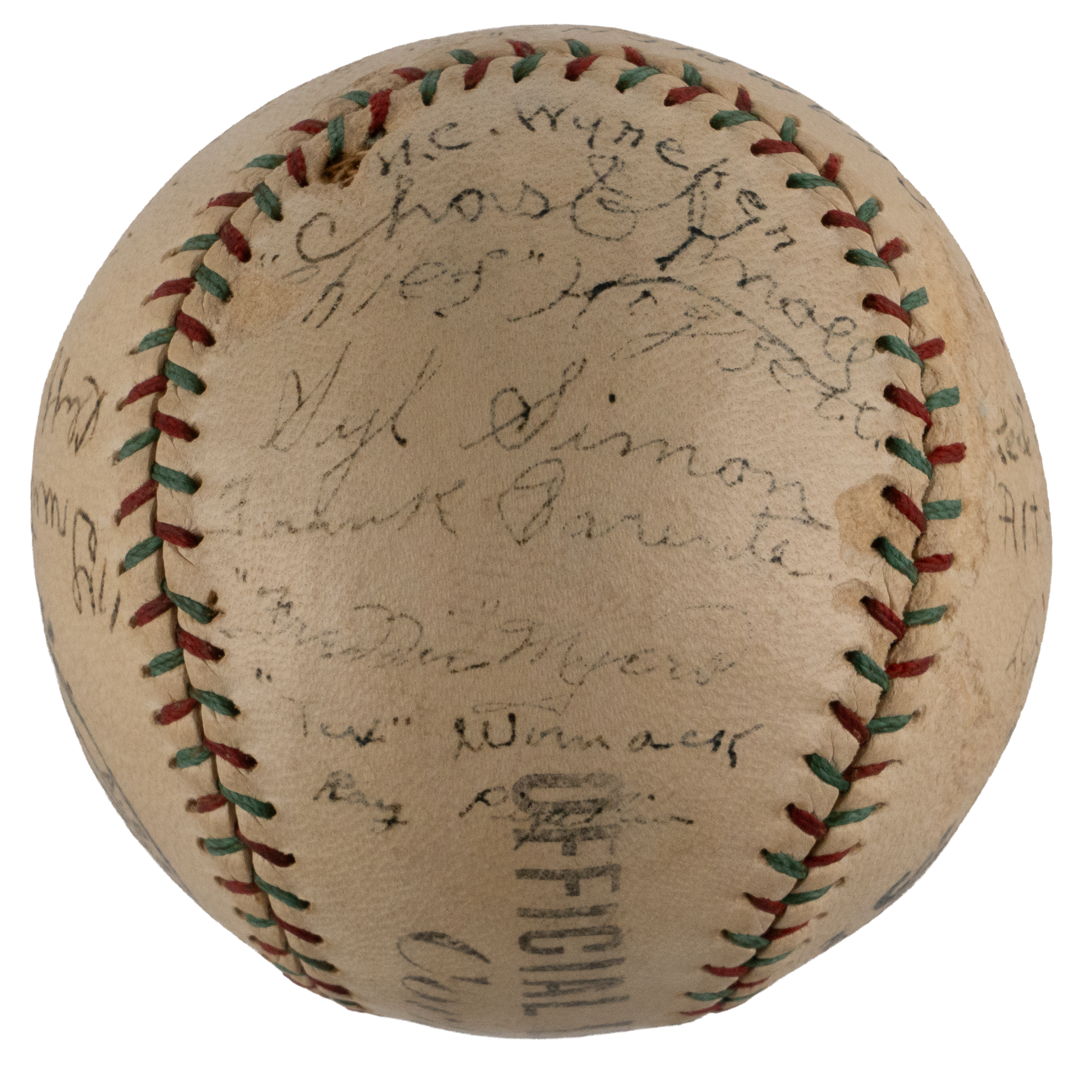 Champions of a long defunct minor league surface, with the offering of this 1928 Fort Wayne Chiefs team-signed baseball. This squad of long, long ago was the cream of the crop in 1928 for the Central League, a mid-western association that went out of business after the 1951 season. A Spalding Official League Special model, this antique baseball is decorated with (20) signatures from members of the 1928 Central League champion Chiefs.