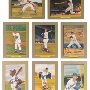 A prestigious lineup takes the field, with this 1985-1990 Perez-Steele Great Moments signed card collection (33). The illustrious subjects are highly regarded Hall of Famers, and their signatures are proudly applied examples, showing pleasing potency throughout. A preferred medium for autograph seekers, these Great Moments cards show Ex-Mt to Nm-Mt details.