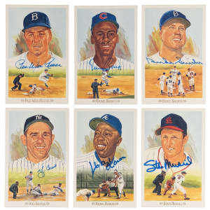 The cards are crisp and clean, the signatures are bold applications, and the subjects are all illustrious Hall of Famers, in this collection of (21) signed 1989 Perez-Steele Celebration postcards. Graced with the artwork of Dick Perez, these reverent postcards are a collector's dream. The addition of the potent blue felt-tip autographs elevates their status to prime targets.