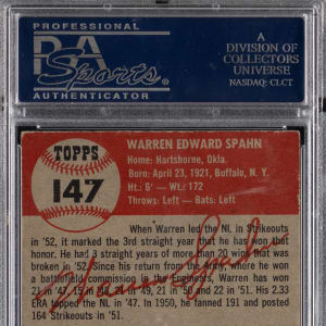 Graded EX 5 by PSA. Boston Braves Hall of Fame pitcher Warren Spahn.