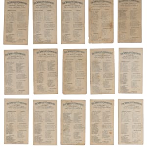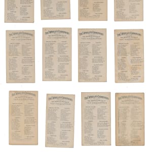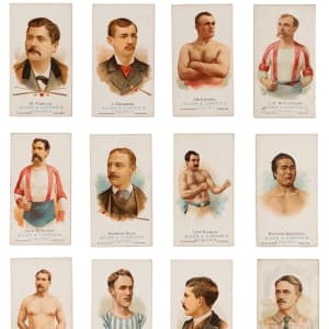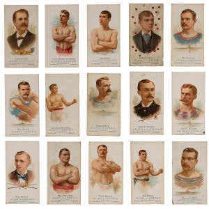 Long before $700 million contracts and 24/7 news coverage, athletes followed their dreams in relative obscurity. The upstarts found in the offered 1888 N28 Allen & Ginter The World’s Champions partial set of (30/50) cards picture a variety of figures participating in sports that were once commonplace. The overall condition breakdown is as follows: 27% (EX or better), 30% (VG to VG-EX), 20% (GD) and 23% (FR or lesser) with 20% displaying trimming and/or writing. Subjects include: Baseball Players: (1/10) withCaruthers (PR, writing); Billiards: (6/7) with Adams, Daly, Schaefer, Sexton, Slosson, Vignaux; Oarsmen: (6/10) with Beach, Hanlan, Hosmer, McKay, Ross, Trickett; Pool Players: (2/2) with Frey, Malone; Pugilists: (8/10) with Carney, Carroll, Dempsey, Kilrain, Lannon, Mitchell, J. Smith, Weir; Wrestlers: (7/7) with Acton, Bauer, McLaughlin, McMahon, Muldoon Sorakichi and Young Bibby.