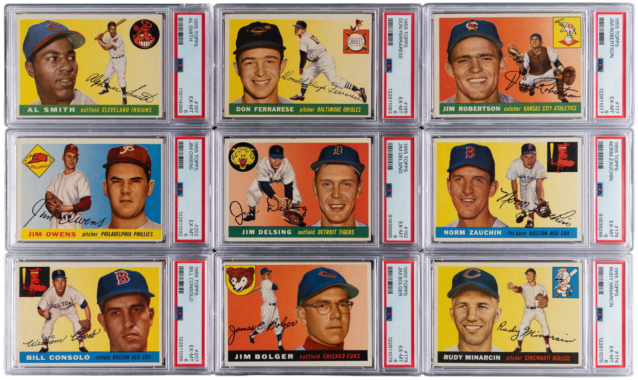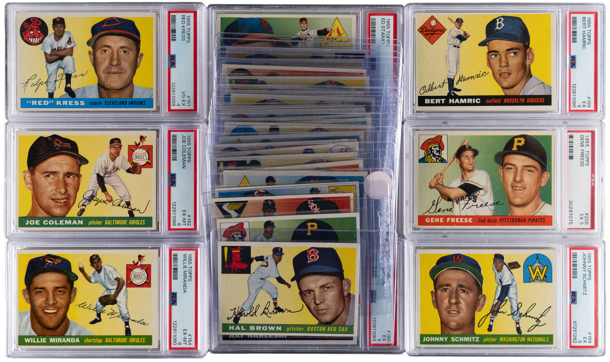 Brilliant 1955 Topps high-grade partial set of (156/206) cards with (37) PSA graded including a round tripper of Hall of Famers and (36) tougher high numbers. Highlights include: