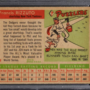 Graded NM 7 by PSA. A crisp horizontal example of New York Yankees Hall of Fame shortstop Phil Rizzuto. Tougher high number.