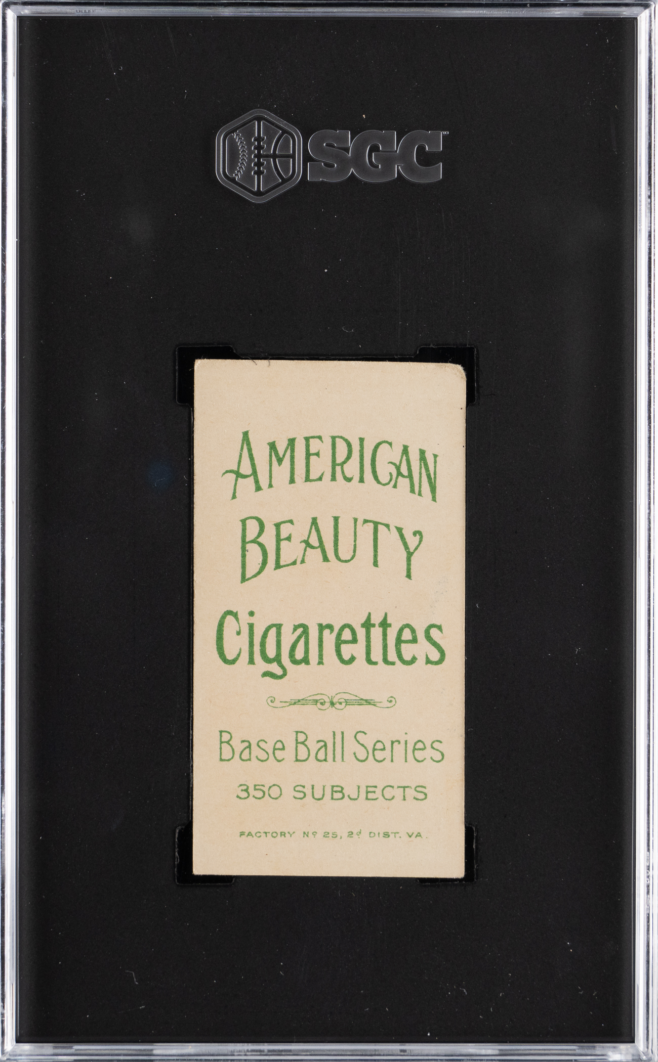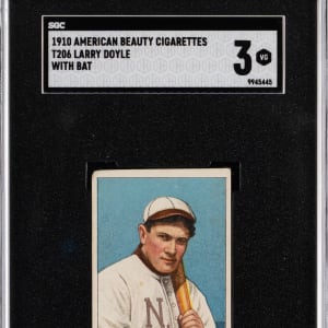 Graded VG 3 by SGC. New York Giants star Larry Doyle "with Bat" pose. American Beauty 350 Subjects back (with frame). Only 14 total copies of the player/brand/pose combination have been judged by the grading service.