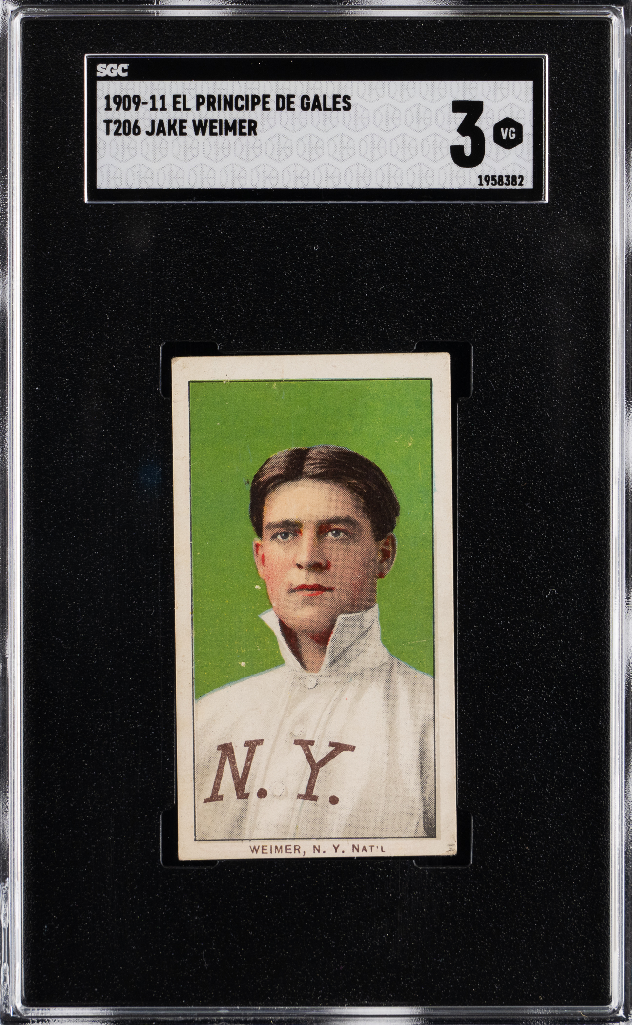 Lot # 92: 1909-1911 T206 White Border Jake Weimer SGC VG 3 - El Principe De Gales Back