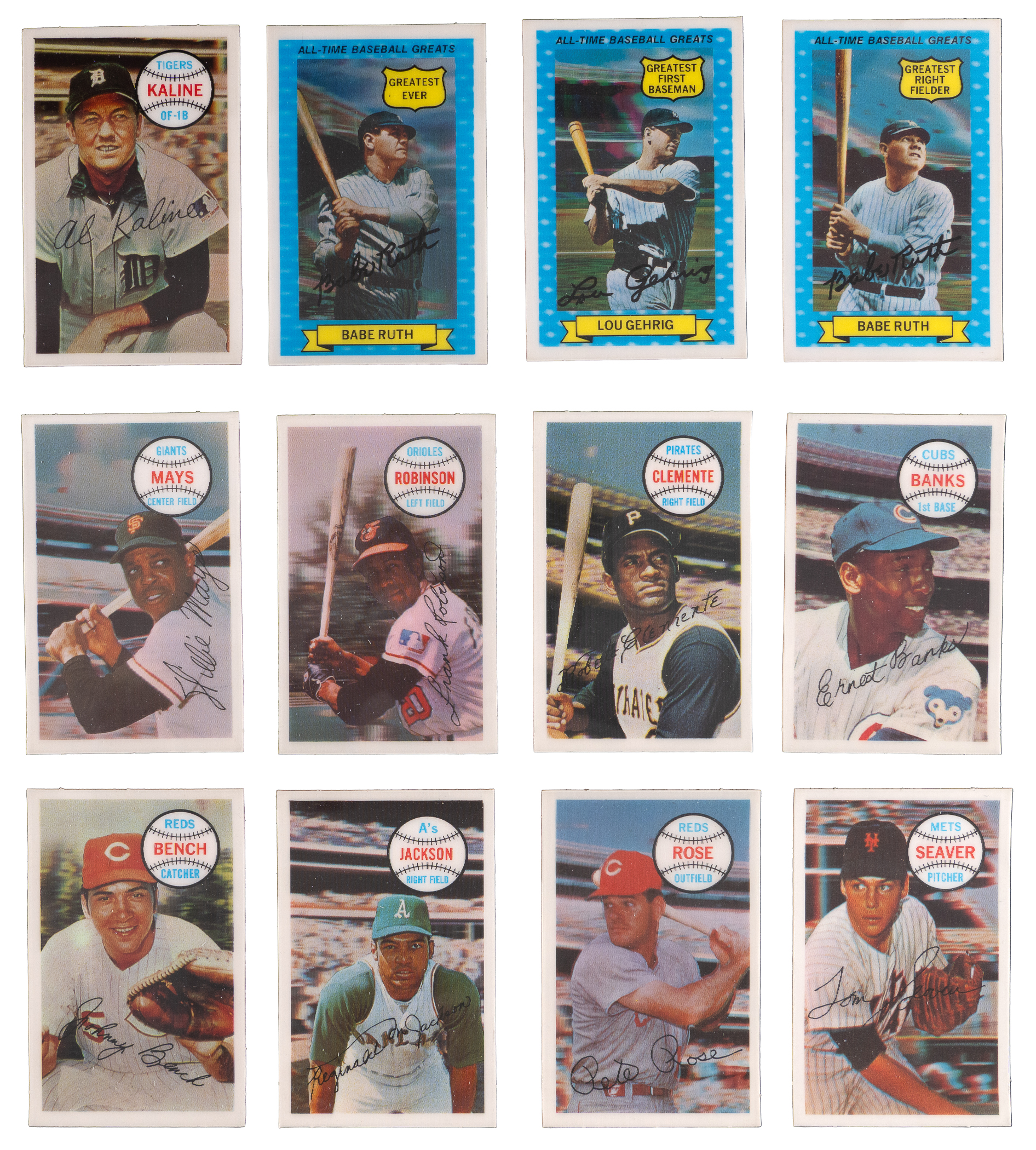1972 Kellogg’s All-Time Baseball Greats set: (15/15, average NM to NM-MT) with #6 Ruth (NM), #13 Gehrig (NM-MT), #14 Ruth (NM-MT);