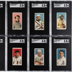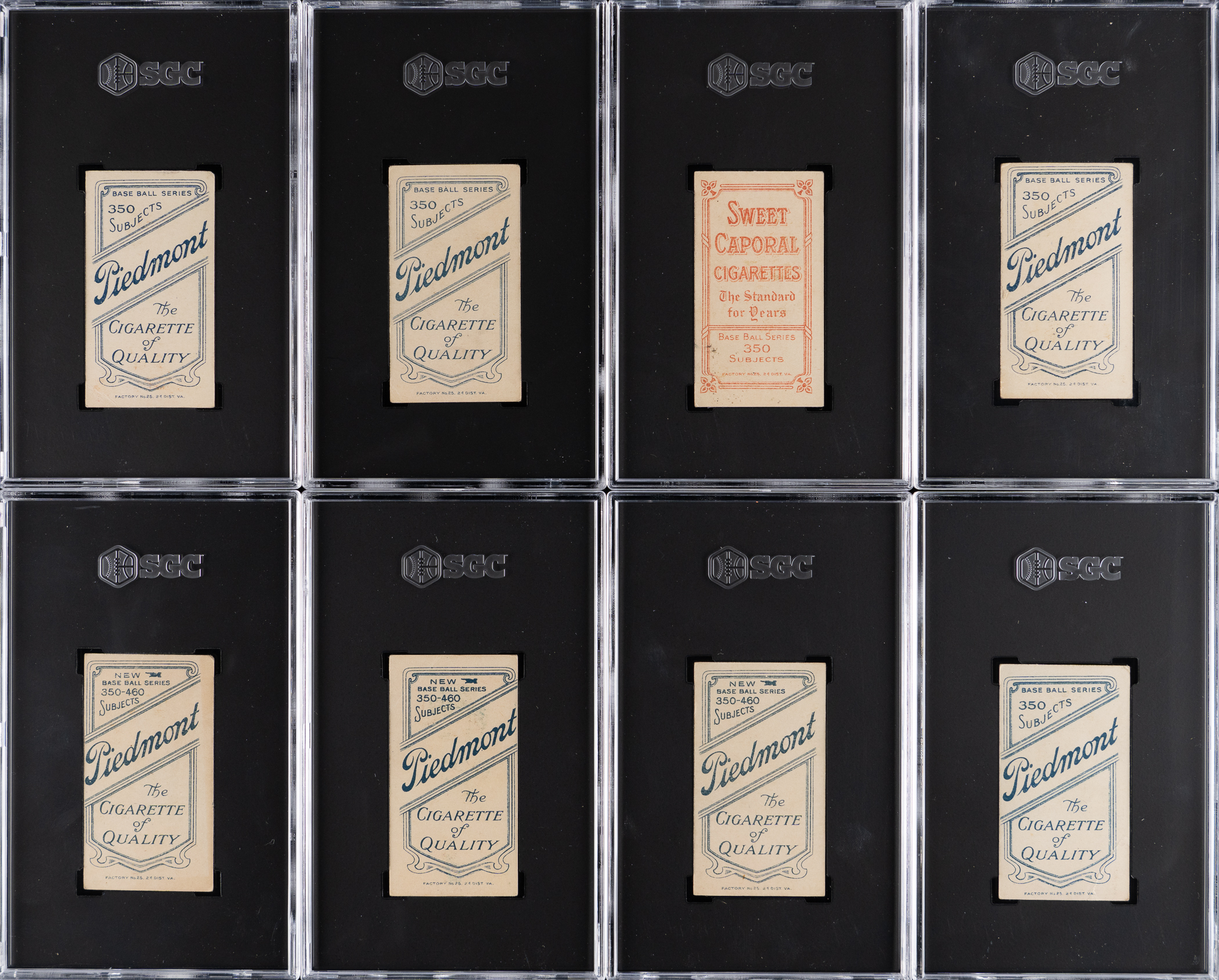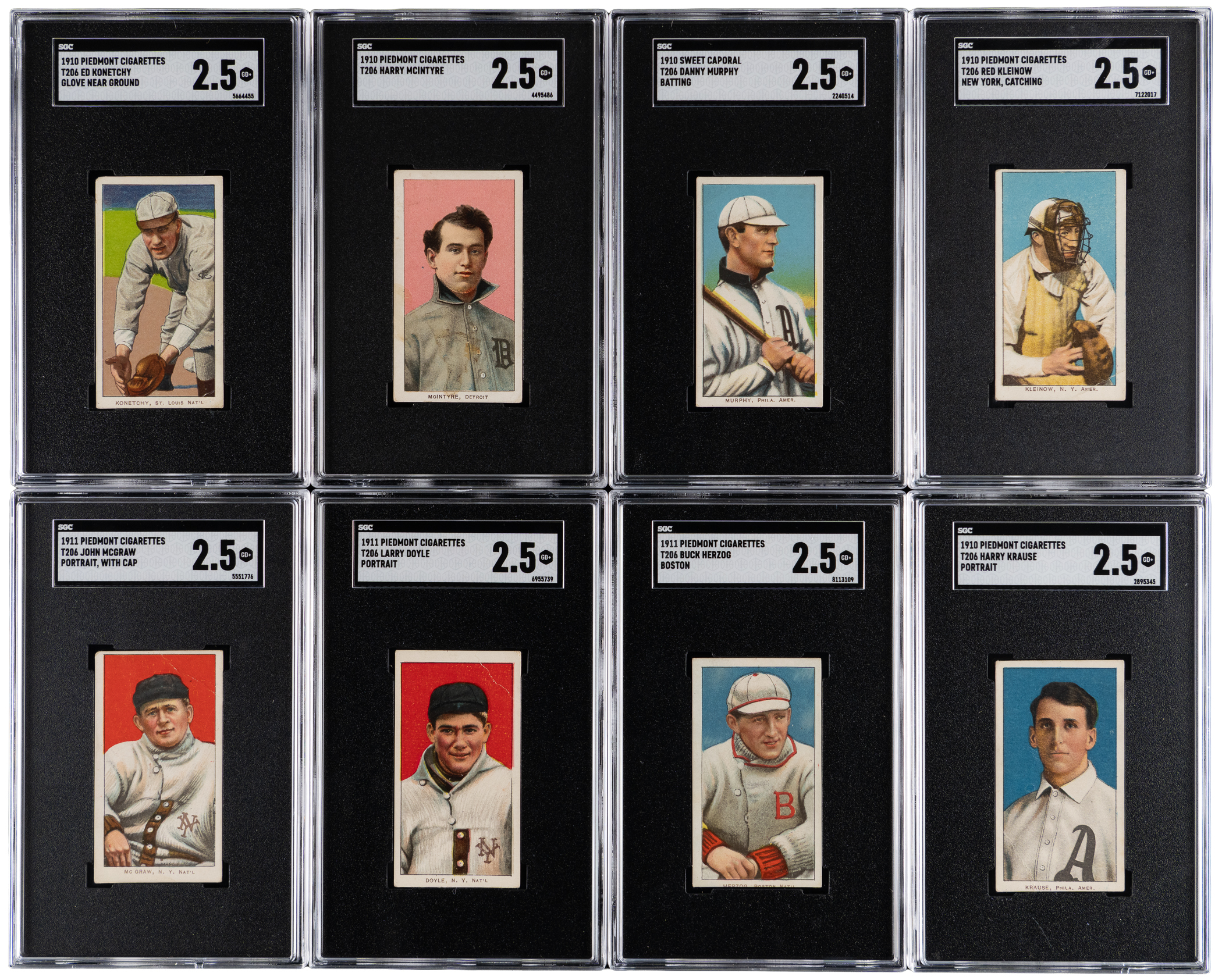 Each graded GOOD+ 2.5 by SGC with common advertising backs. "Little Napoleon" commands the offered 1909-1911 T206 White Border collection of (8) different cards. Subjects include: Doyle (Portrait), Herzog (Boston), Kleinow (New York, Catching), Konetchy (Glove Near Ground), Krause (Portrait), McGraw (Portrait, No Cap), M. McIntyre (mislabeled as Harry McIntyre) and Murphy (Batting).
