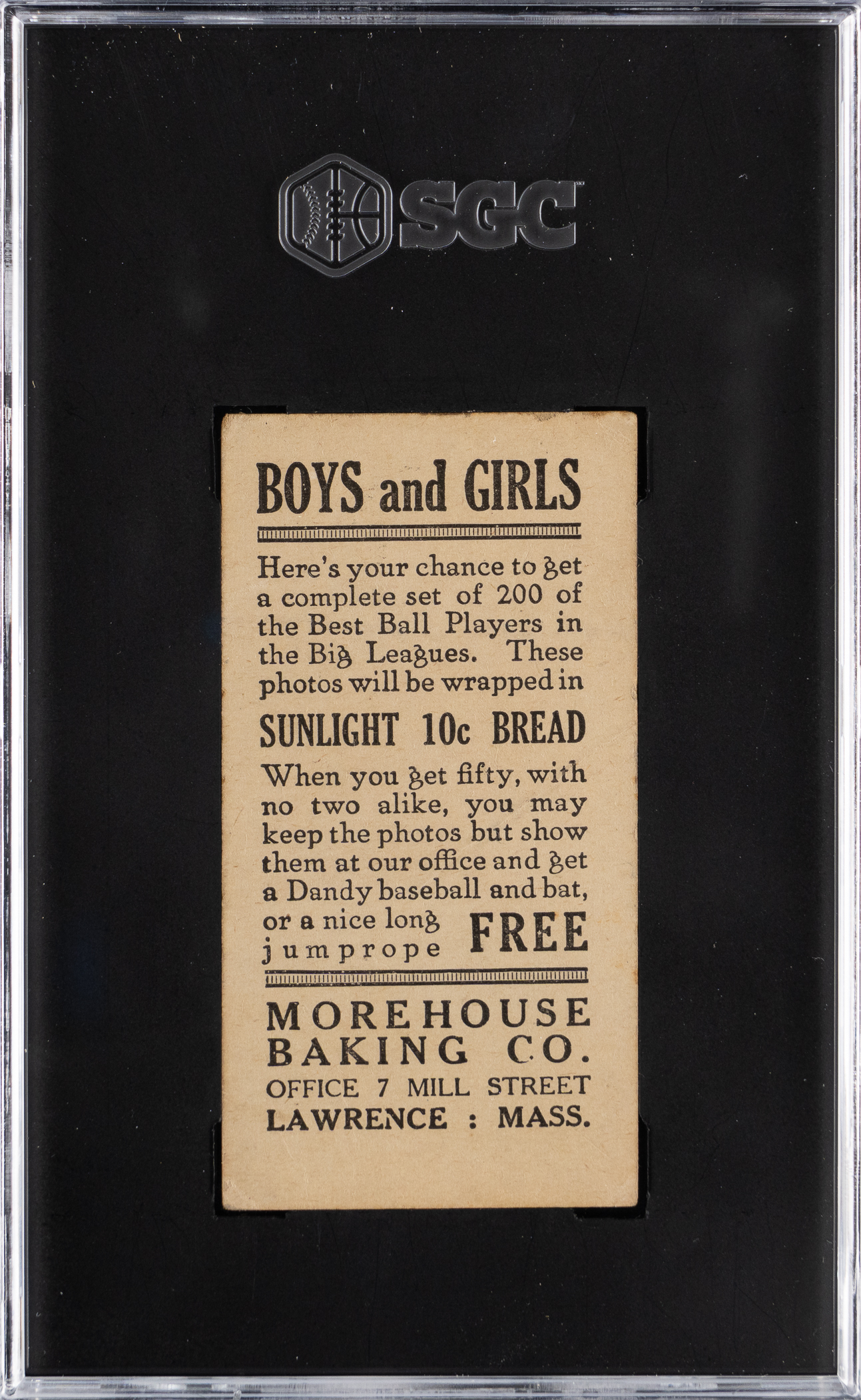 Graded FAIR 1.5 by SGC. The offered 1916 D352 Morehouse Baking #11 Zinn Beck is "just the type" for pre-war collectors! The St. Louis Cardinals infielder was a member of the Jewish faith tradition and will be particularly sought after among such hobbyists.