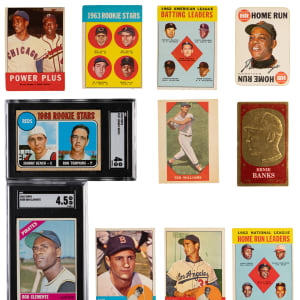 1963 Topps: (163 cards, average VG, includes 15 high numbers) with #2 Mantle/Runnels LL (GD), #3 Aaron/Banks/Mays LL (VG), #25 Kaline (GD), #115 Yastrzemski (VG-EX), #210 Koufax (VG), #228 Oliva RC (VG), #242 Banks/Aaron (FR), #466 Freehan RC (VG), #470 Tresh (VG-EX);
