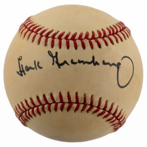 There’s sure to be some heated action in the battle over this Hank Greenberg single-signed baseball. Given the highly pleasing potency of Greenberg’s sweet spot signature on this attractive, evenly toned ONL/Feeney baseball, it stands as a great collecting prize, radiating display appeal. Couple in the fact that the Hall of Fame slugger’s departure to the “Field of Dreams” took place forty years ago, and interest in this orb compounds.