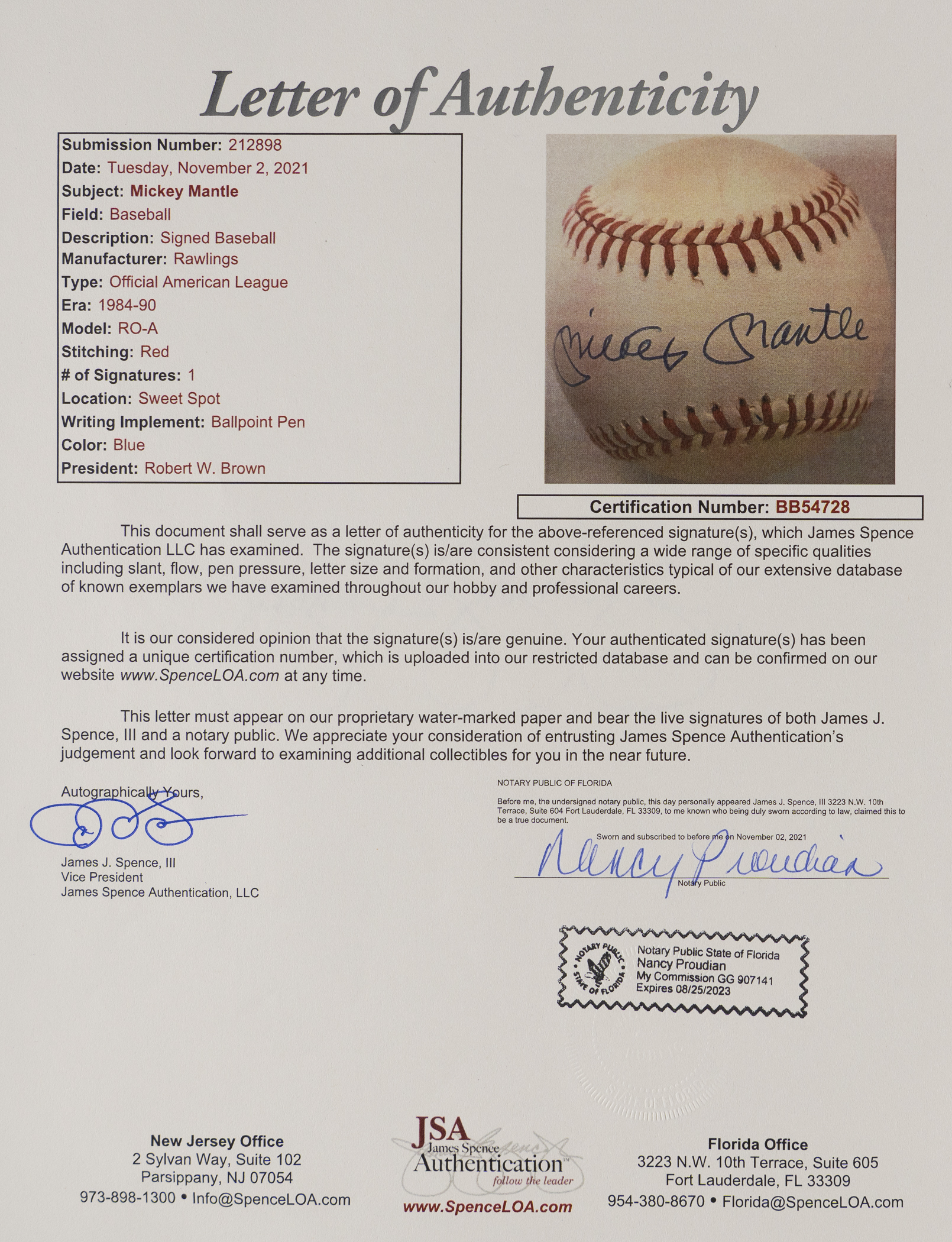 Full LOA from James Spence/JSA.