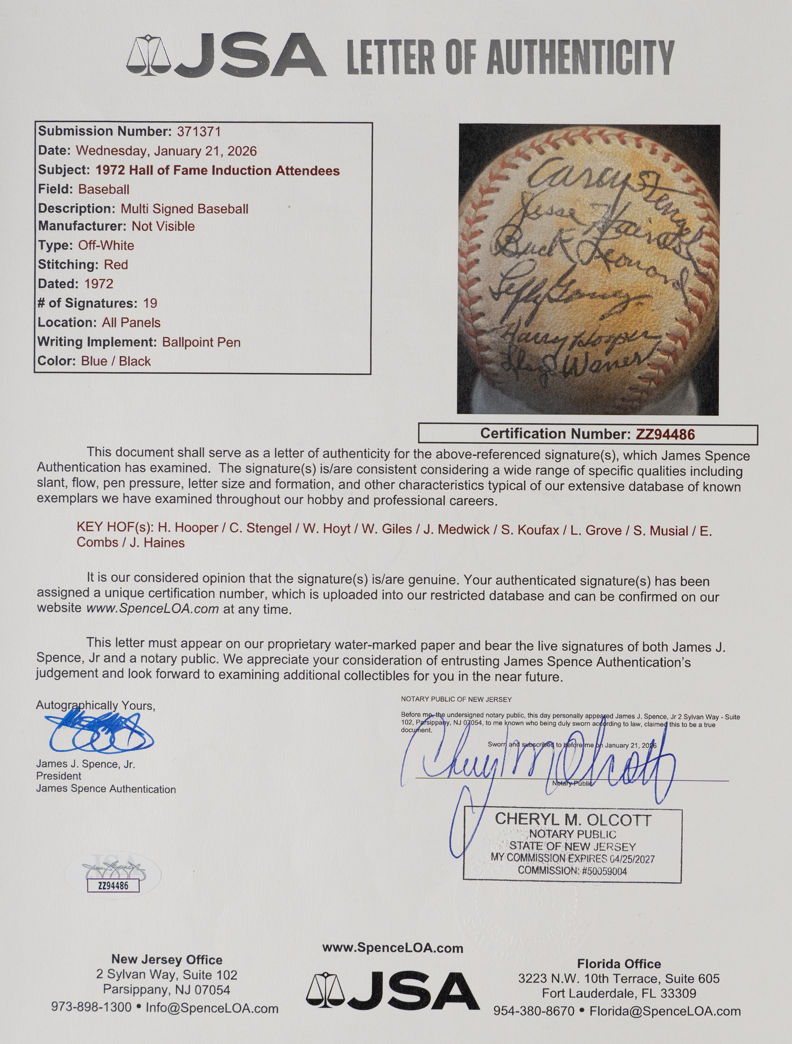 Full LOA from James Spence/JSA.
