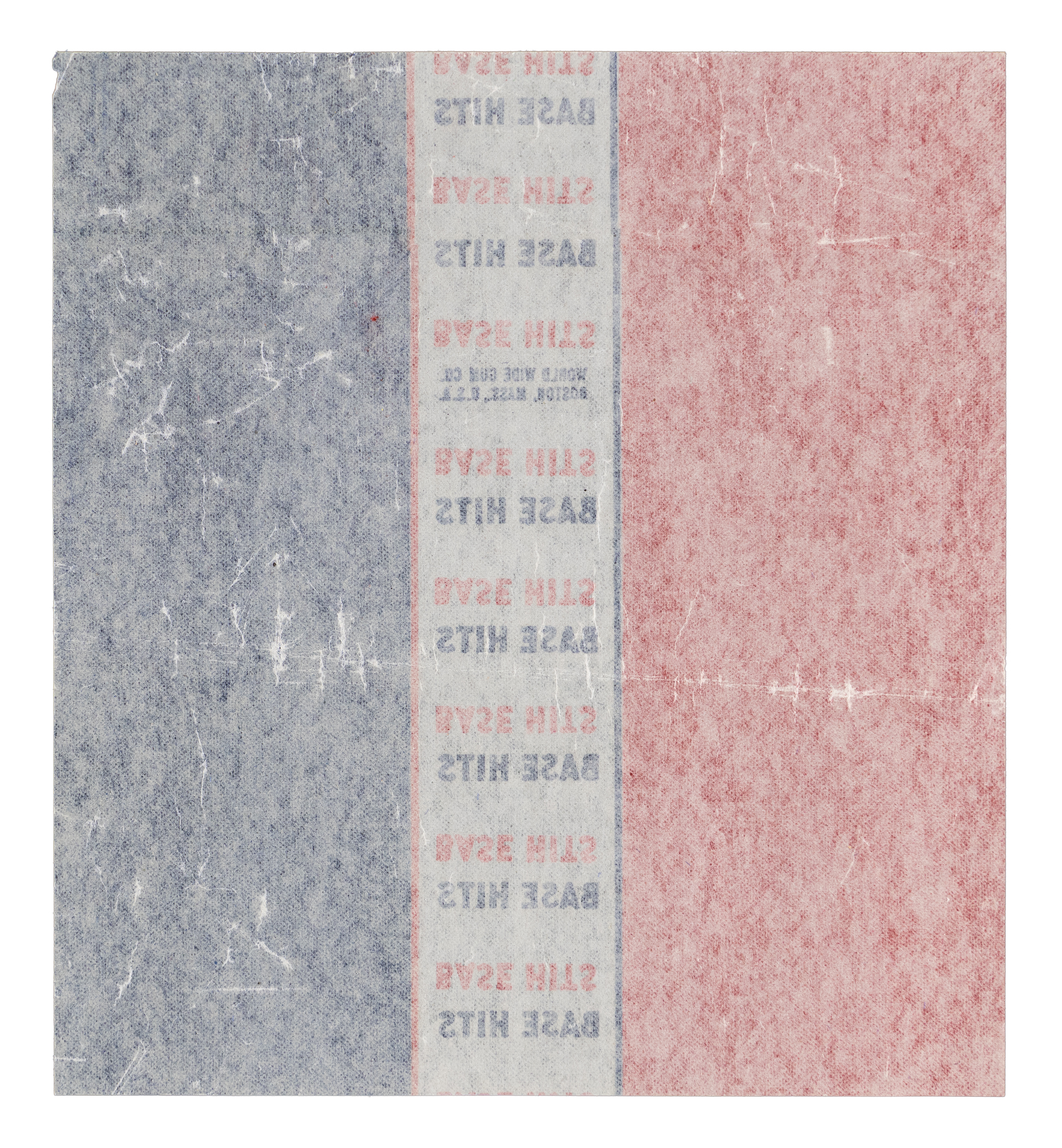 Incredibly scarce 1930s World Wide Gum "Base Hits" wrapper. This red-white-and-glue unfolded collectible was purportedly used by the Canadian syndicate of the Goudey Gum Company for a baseball set of unknown origin. Some veteran hobbyists have speculated that such wrappers could have been used to offload factory overstock or National Chicle inventory following Goudey's 1937 acquisition of their former rival. Regardless of the backstory, this survivor presents in outstanding condition with crystal clear advertising graphics, a crisp perimeter, and defined factory fold lines.
