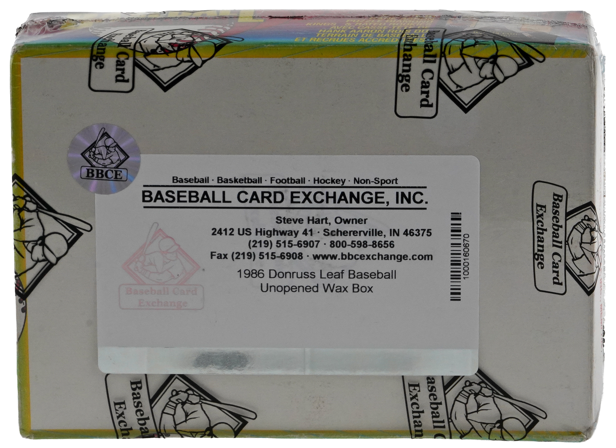 Dig into the offered 1986 Leaf unopened wax box. This Canadian syndicate of Donruss will deliver (36) 12-card packs plus a puzzle piece per. In addition to a possible high-grade complete set, find the Hall of Fame rookie card of "The Crime Dog" Fred McGriff! The entire box comes shrink-wrapped by Baseball Card Exchange (owned by Steve Hart, the foremost expert on unopened material).