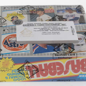 Dig into the offered pair of 1989 Donruss and Fleer unopened cello boxes. Each 24-pack container could showcase Hall of Famers or key rookie cards peeking through the fronts/backs. Find high-grade debuts of Biggio, Griffey Jr., R. Johnson, Sheffield, Smoltz and many more! Each cello box comes shrink-wrapped by Baseball Card Exchange (owned by Steve Hart, the foremost expert on unopened material).