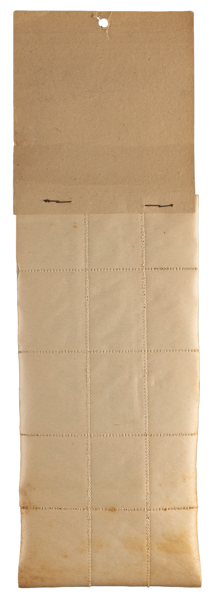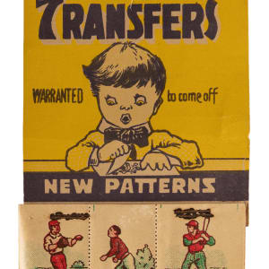 Interesting 1920s German Baseball Transfers collection of (10) uncut sheets that are staple attached to the original hanger. Measuring overall 4 x 12-1/2" dimensions (including the cardboard advertising header with a hanger hole), these glossy "Made in Germany" relics picture generic ball players batting, catching, and throwing with colorful uniform accents. Includes (10) 15-stamp sheets with varying degrees of perforation stress/separation and moderate instances of page sticking.