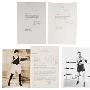 Gene Tunney, The Fighting Marine, is the subject of this six-piece collection. Amassing a 80-1-3 record (48 KO's, 1 No Contest) with wins over Jack Dempsey (twice), Harry Greb and Georges Carpentier, his legacy as an all-time (light) heavyweight cannot be in question. The fantastic grouping contains the following: