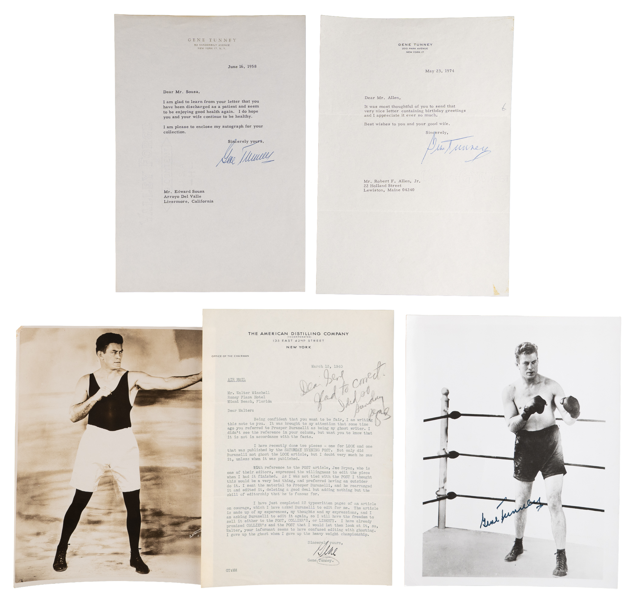 2.) 1958 typed letter signed (Gene Tunney letterhead)