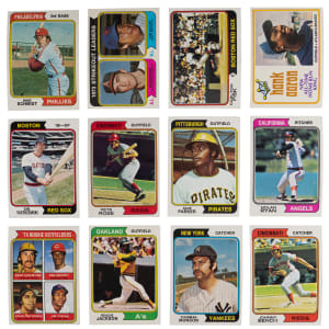 Large 1974 Topps collection of (1,050+) cards featuring (90+) Hall of Famers. This sizeable assembly generally averages (EX-MT) condition with some better or lesser. Highlights include: #1 Aaron (EX-MT), #10 Bench (EX), #20 Ryan (NM), #80 Seaver (VG-EX), #105 Fisk (VG), #130 R. Jackson (EX), #207 Ryan/Seaver LL (EX), #252 Parker RC (EX-MT), #280 Yastrzemski (EX-MT), #283 Schmidt (EX-MT), #300 Rose (EX-MT), #340 Munson (EX-MT) and #598 Griffey Sr. (EX-MT).