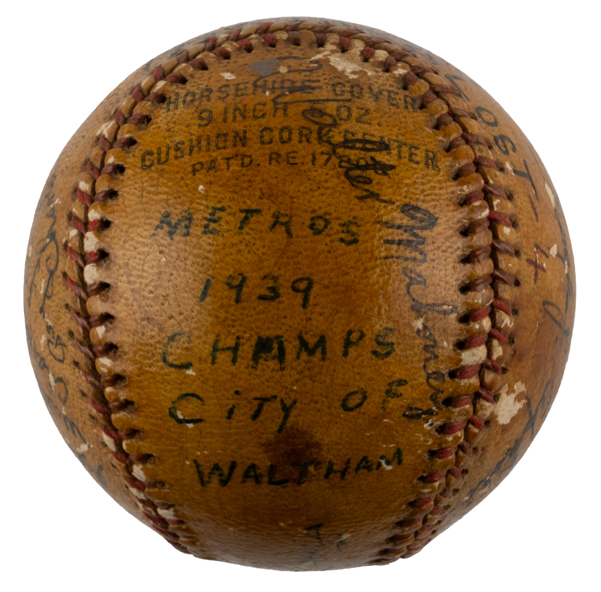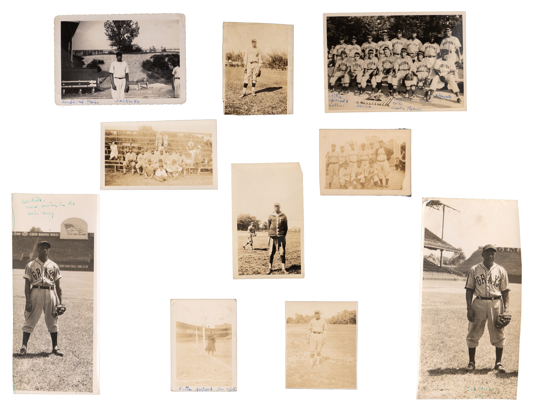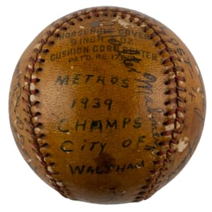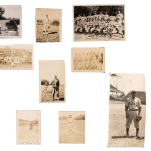 Featured are an assortment of news service photographs, snapshots, and souvenir type photos, with (25+) approximate 8” x 10” photographs, and (70+) smaller photographs. Also present are several miscellaneous items, including a House of David postcard, and a 1939 City of Waltham champion Metros team-signed baseball.