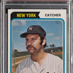 Graded MINT 9 by PSA. The offered 1974 Topps #340 Thurman Munson ranks in the upper 10% of all similar cards judged by the grading service. Only 6 graded higher of the New York Yankees captain.