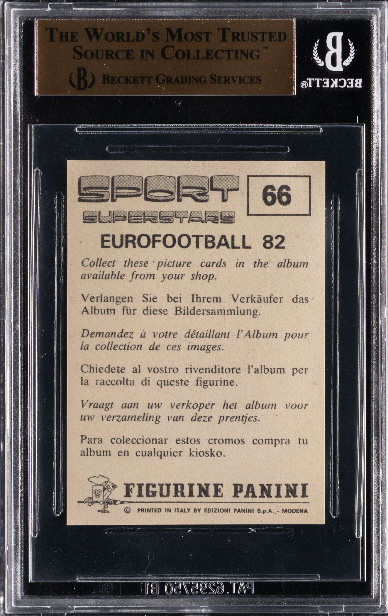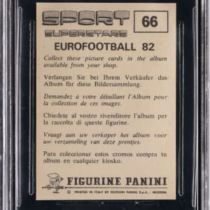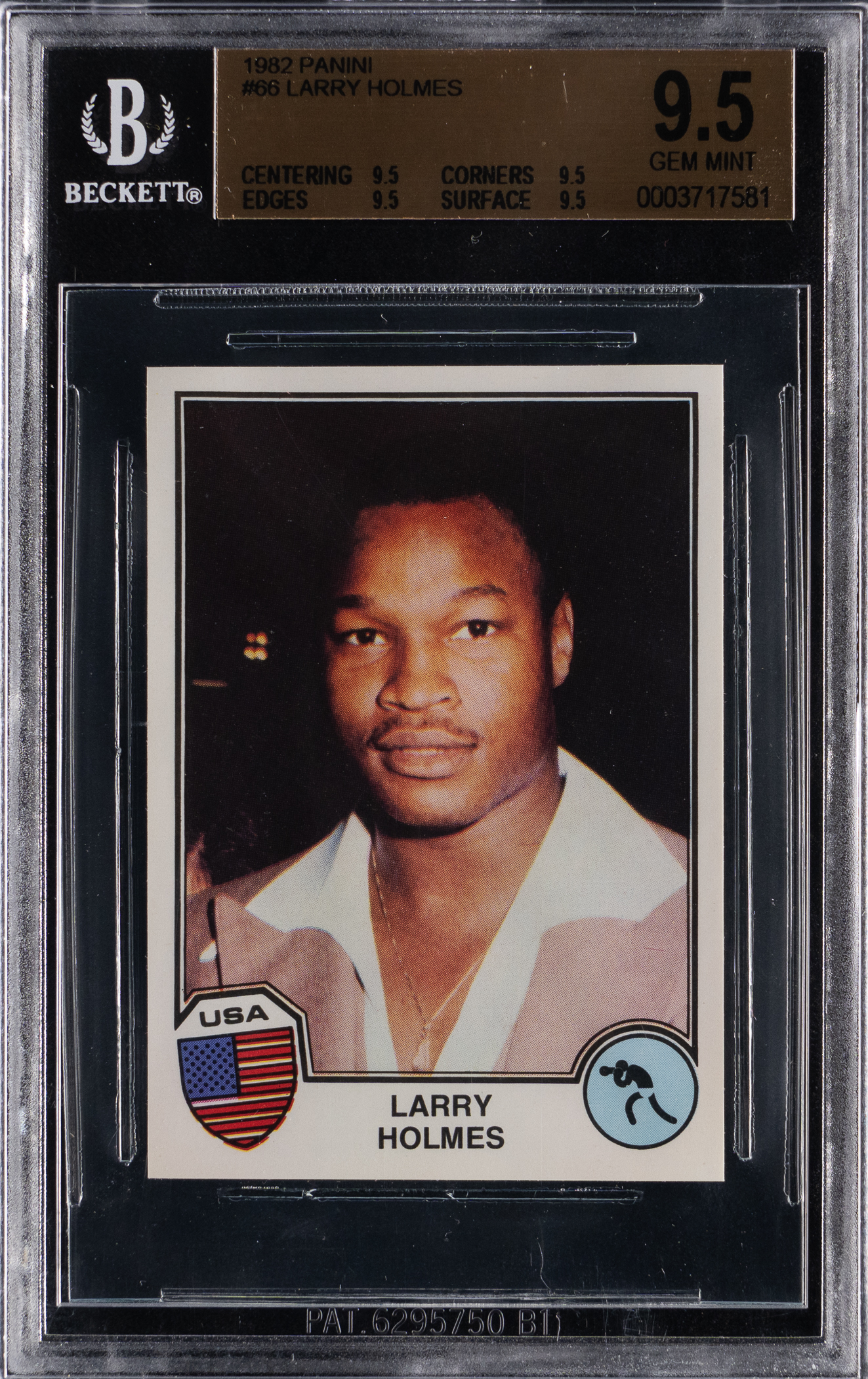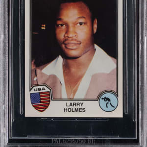 Graded GEM MINT 9.5 by BGS. Bridging the gap between Muhammad Ali and Mike Tyson, the dominant Larry Holmes presided as World Heavyweight Champion for over seven years. The offered 1982 Panini Sports Superstars #66 rookie example of "The Easton Assassin" displays straight 9.5 sub-grades for each of the centering, corners, edges, and surface levels.