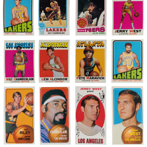 1971-1972 Topps: (9 cards) with #10 Baylor (GD), #29 Archibald RC (EX), #47 Cowens RC (EX-MT), #50 West (EX-MT), #55 Maravich (VG), #63 Lanier RC (EX-MT), #70 Chamberlain (EX), #100 Alcindor (EX), #200 Issel RC (EX-MT) ;