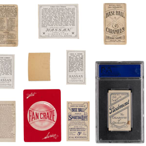 From the family archive of former Big Leaguer Fred Tenney arrives this collection of eight different 1906-1912 singles. Includes: 1906 WG3 Fan Craze (EX-MT), 1909 E91-B American Caramel (PR, tear), 1909 German Baseball Stamps (EX), 1909-1911 E90-1 American Caramel (FR), 1909-1911 T206 White Border (PSA VG-EX 4, Piedmont 150 Subjects back), 1910 E98 Anonymous Set of 30 Red Background (EX), 1910-1911 M116-1 Sporting Life Blue (EX-MT) and 1912 T202 Hassan Triple Folders Lobert/Lobert Gets Tenney/Dooin (three separated panel pieces).