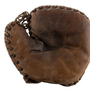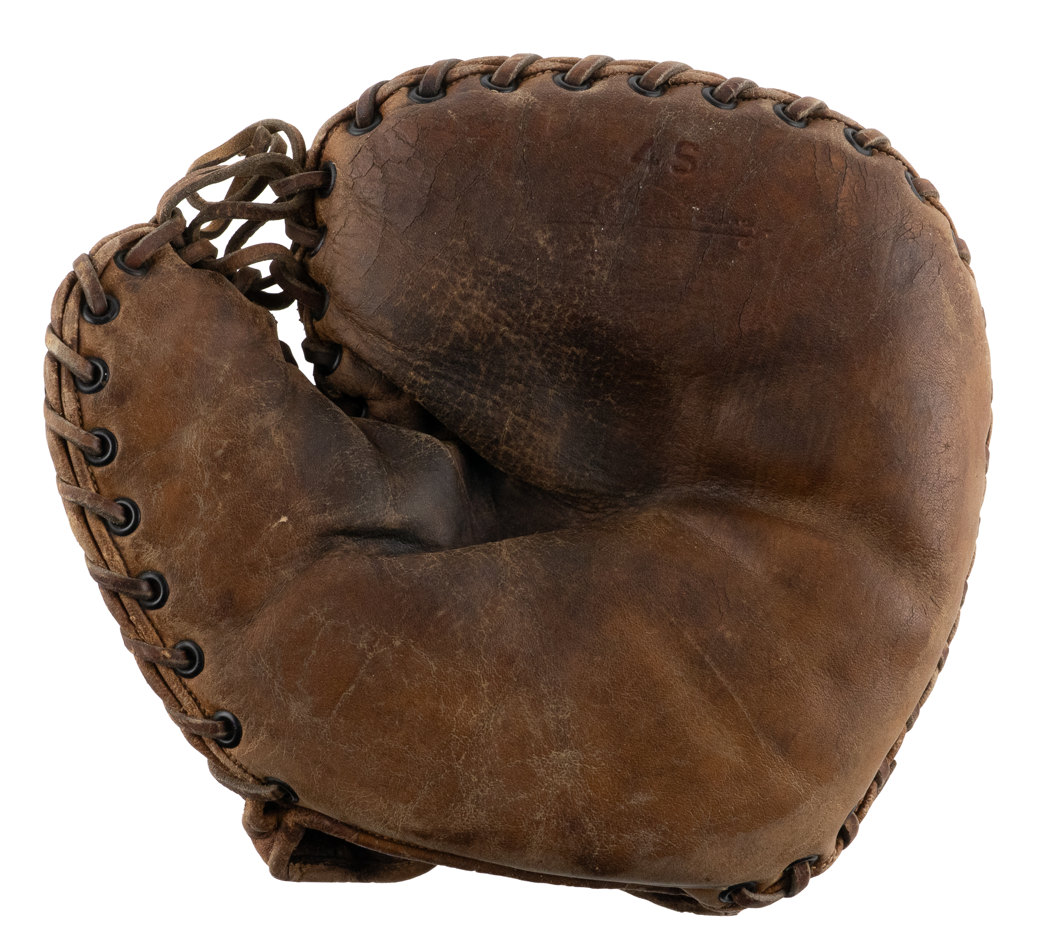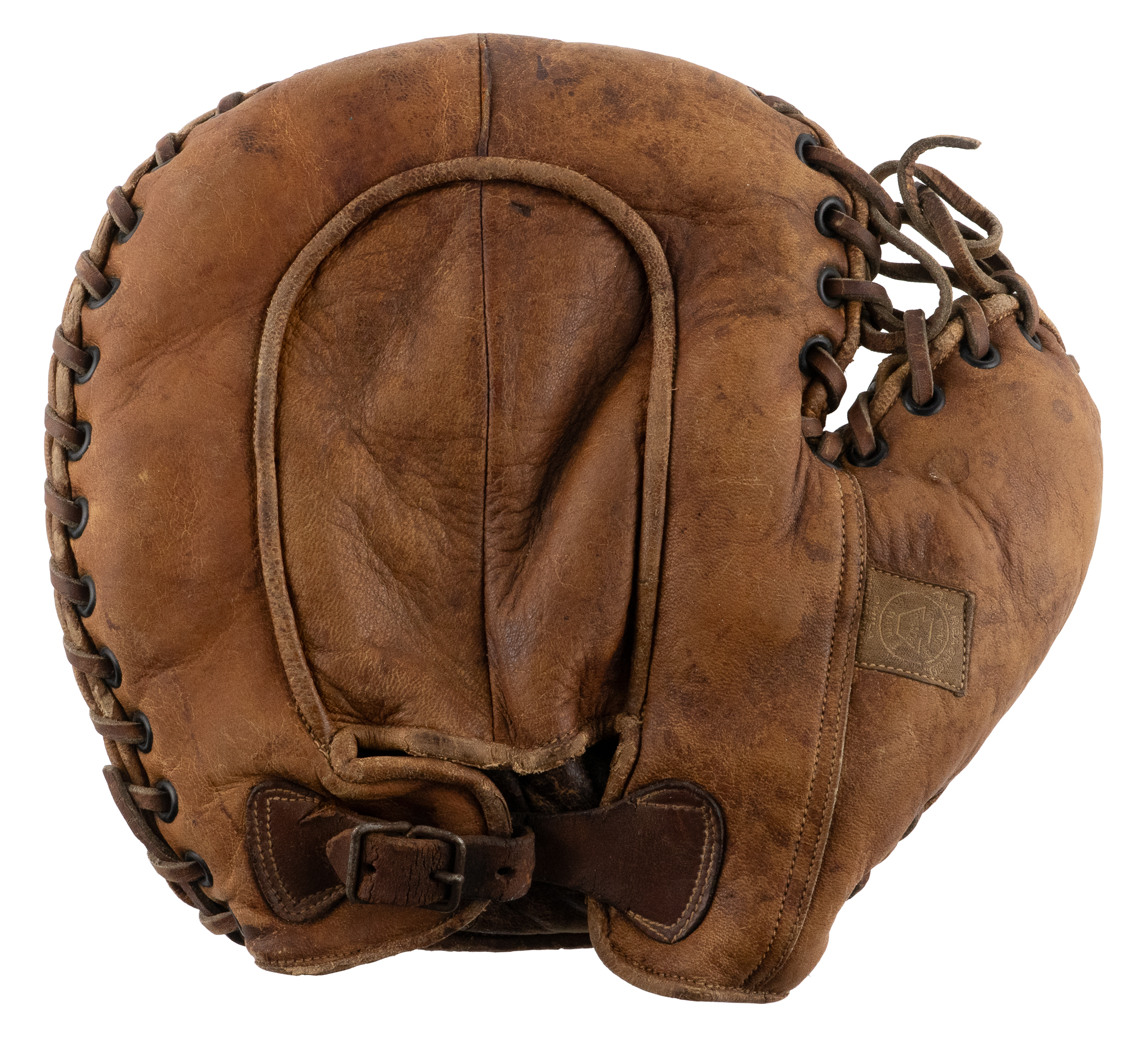 Fred Tenney would debut in 1894 for the Boston Beaneaters and finish his career in 1911, back in Beantown, for the Boston Rustlers. Over his seventeen-season playing career he would bat .294 while being widely considered "one of the best defensive first basemen of all time". He is credited with originating the 3-6-3 double play and modernizing the position, playing further off the line and deeper behind the bag which has since become commonplace. Additionally, even the glove he would use was innovative. It was an early example departing from a standardized glove to a position-specific glove, from pocket depth, fingerless format and upgraded padding to protect the first baseman. Offered is one of those early transitional gloves. Unlike the exact one Tenney would use, this mit was fashioned for a right handed thrower, but otherwise displays the innovations that transformed the position. The A.J. Reach mit display minor wear, though presents very well with intact lacing and back buckle. A "4S" model number and a Fred Tenney etched-signature are visible along the top of the frontal padding. While minor leather cracking and an illegible ink notation (below the facsimile) are present, it is undeniable that this glove displays magnificently, while sharing an significant story of the evolution of the game.
