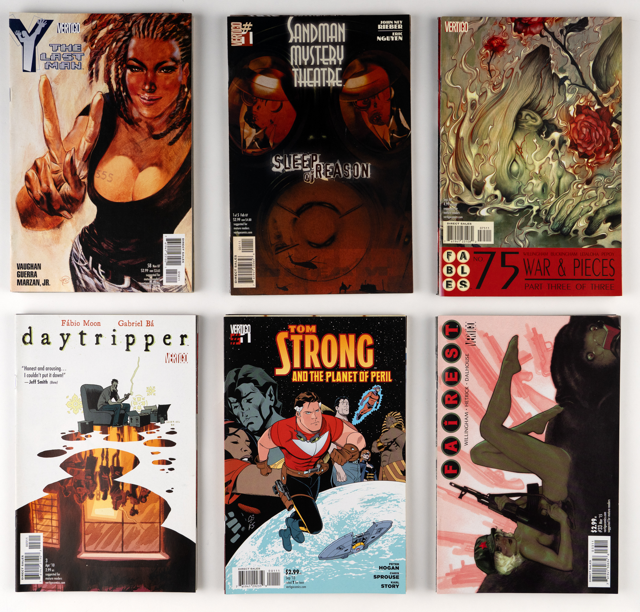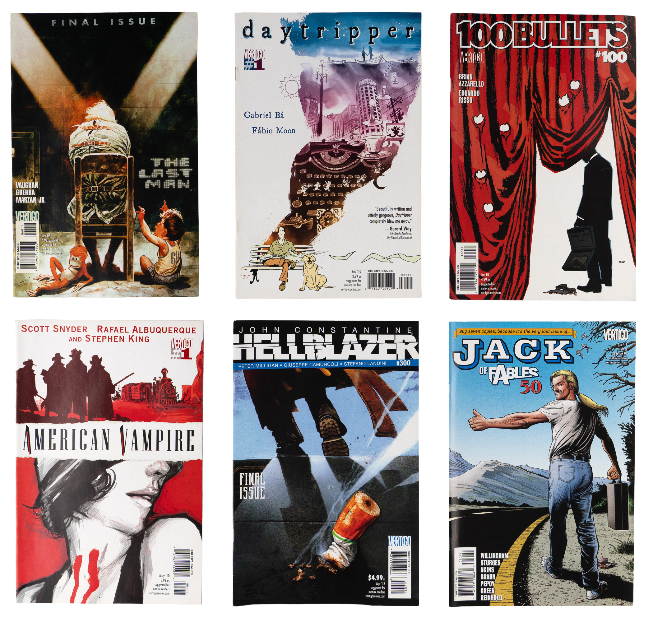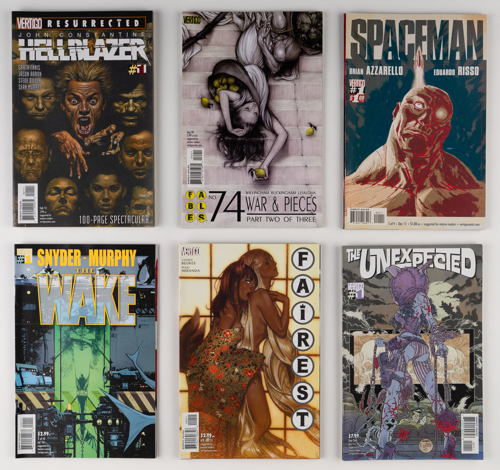 Jack of Fables #50 (NM), Hellblazer #300 (F), 100 Bullets #100 (VF), The Wake #1 (F/VF), Daytripper #1 (F), 3 (F), Y The Last Man #58 (F), #60 (VF), Hellblazer 100-Page Spectacular #1 (NM), Fairest #9 (G), #33 (G), The Unexpected #1 (NM/VF), American Vampire #1 (NM), Spaceman #1 (VF/F), Tom Strong and the Planet of Peril #1 (F), Fables #75 (NM/VF), #74 (NM), Sandman Mystery Theater: Sleep of Reason #1 (G/F)