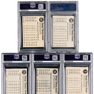 Each signature judged Authentic by PSA/DNA and encapsulated. While signed 1970s Topps singles of deceased Hall of Famers are readily available on the secondary market, such autographs on oddball issues can be a much tougher task. Offered is a run of 1975-1979 Hostess signed Tom Seaver cards from his tenures with the Cincinnati Reds and New York Mets. The strong blue signatures are crisply placed on neatly cut surfaces. Includes: 1975 Hostess #75, 1976 Hostess #35, 1977 Hostess #7, 1978 Hostess #149 and 1979 Hostess #65.