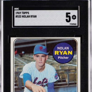 Graded EX 5 by SGC. Classic set collectors will desire the offered 1969 Topps #533 Nolan Ryan second-year card. New York Mets Hall of Famer.