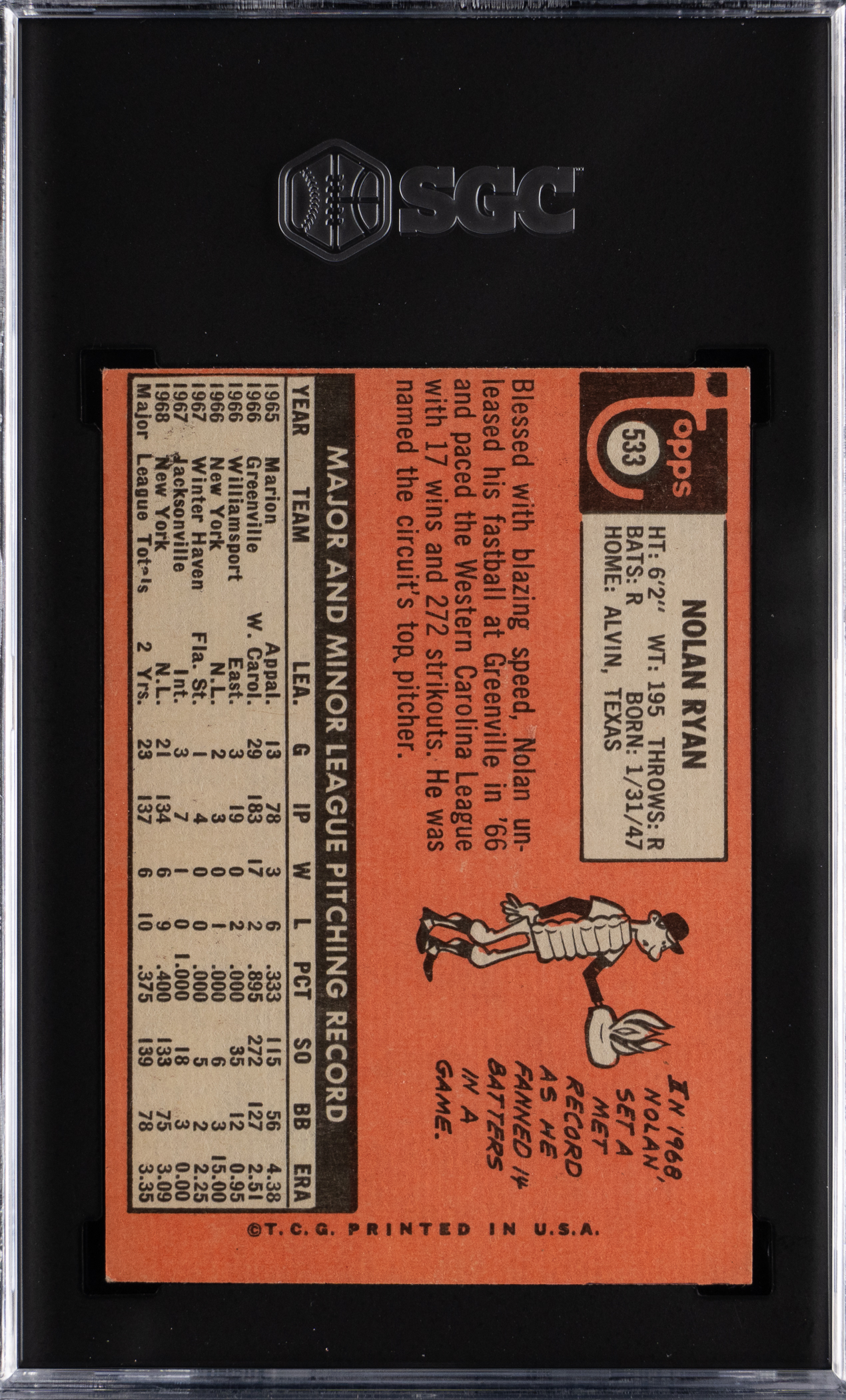1968 Topps #177 Nolan Ryan Rookie SGC VG 3