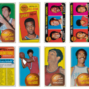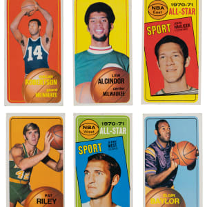 The master of “the sky hook” commands the offered 1970-1971 Topps Basketball near complete set of (150/175) cards. These “tall boys” have an overall approximate condition breakdown of 20% (EX or better), 25% (VG-EX), 30% (VG) and 25% (GD or lesser). Highlights include: #1 Alcindor/West/Hayes LL (FR), #5 Hayes/Unseld/Alcindor LL (EX), #7 Bradley (GD), #13 Riley SP (GD), #24 CL (marked), #65 Baylor (GD), #72 Unseld (VG, stain), #75 Alcindor (VG), #100 Robertson (GD), #101 CL (VG), #107 West AS (GD), #112 Havlicek AS (VG-EX), #114 Robertson AS (EX) and #120 Frazier (PR, reverse writing).